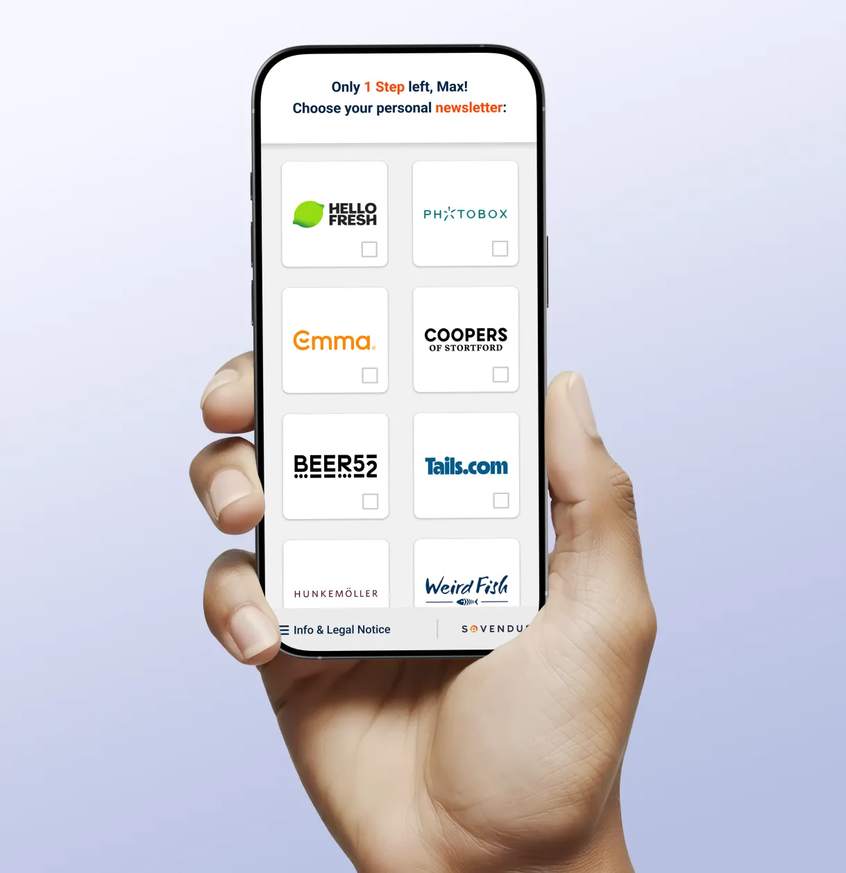 The principle is smart: We position your newsletter offer within our network of 30 million active shoppers per month. You reach verified buyers at the moment of highest engagement – immediately after a purchase. Because users voluntarily choose to subscribe, you ensure genuine interest and high lead quality.